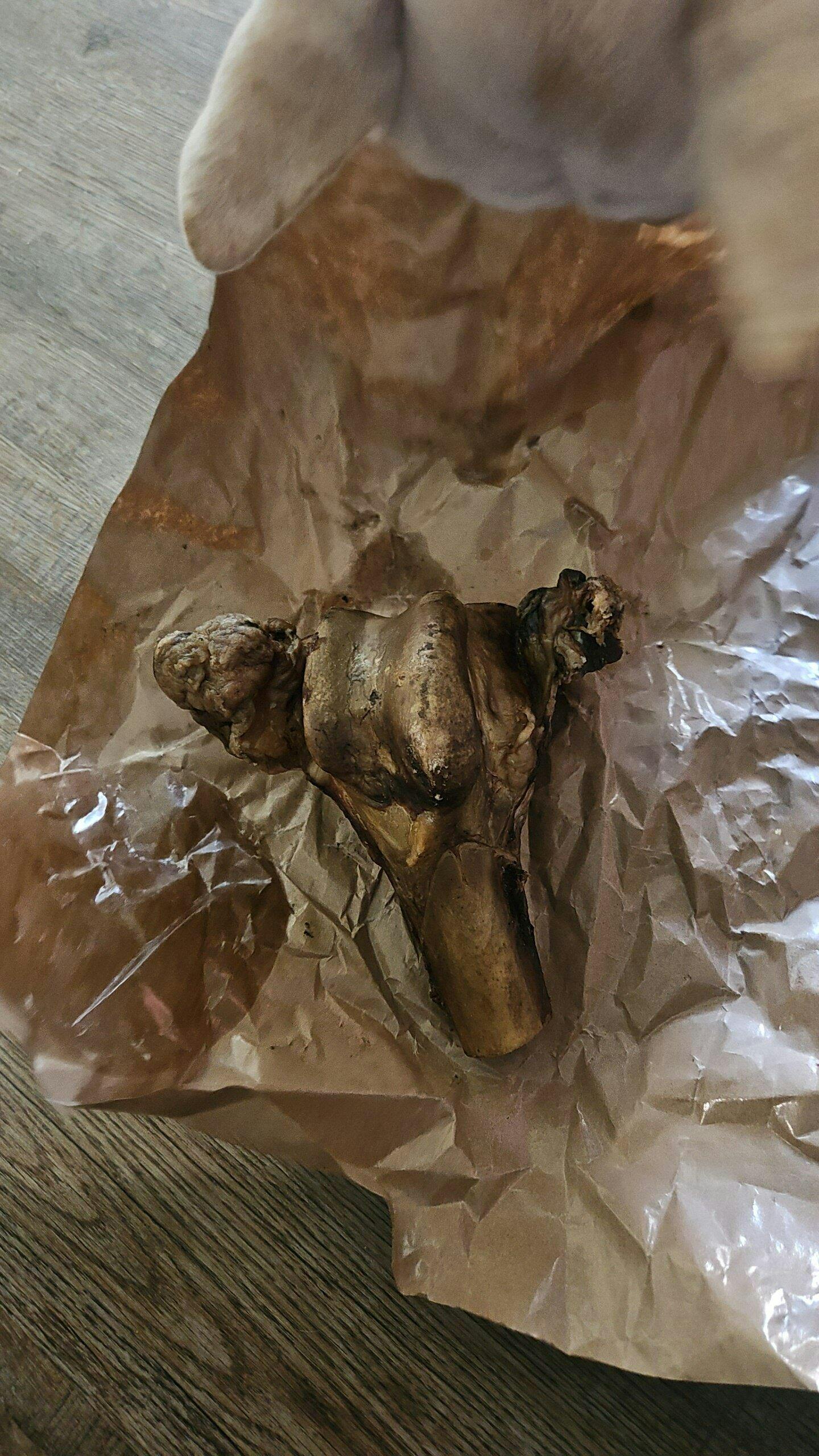 My 75 pound dog who usually loves bones didn't want anything to do with the bone. I'm not quite sure why. It might be because it's huge.